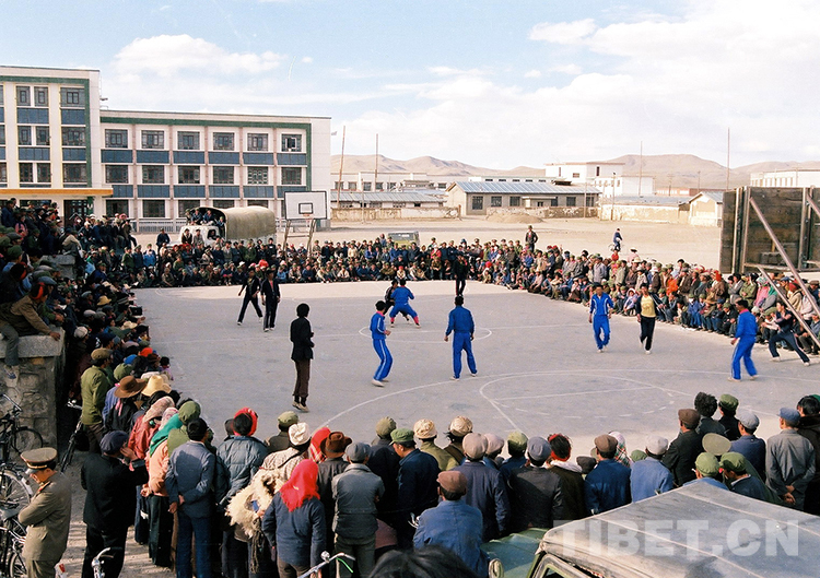 這是在藏北高原首府那曲鎮(zhèn)進(jìn)行的一場籃球比賽(唐召明1987年攝)