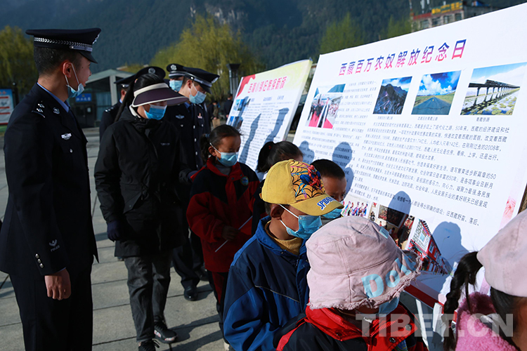 圖為觀看展板上關(guān)于“西藏百萬(wàn)農(nóng)奴解放紀(jì)念日”的介紹