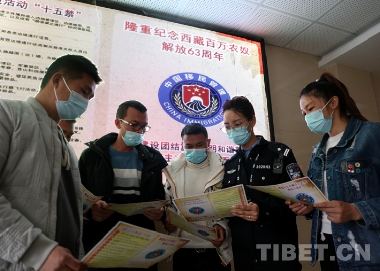 在西藏出入境邊防檢查總站執(zhí)法調(diào)查支隊辦證大廳,辦證室民警結(jié)合辦證室群眾多、人流量大的實(shí)際,開展以“攜手法律宣傳,共建平安邊境”為主題的宣傳活動。通過懸掛宣傳標(biāo)語、設(shè)置新舊西藏對比圖片專欄、發(fā)放“新舊西藏對比圖及涉邊法律法規(guī)”為主題的宣傳單等多種渠道,講解西藏百萬農(nóng)奴翻身得解放的歷史背景,讓更多游客群眾了解西藏民主改革以來波瀾壯闊的發(fā)展史和翻天覆地的新變化,銘記只有中國共產(chǎn)黨才能領(lǐng)導(dǎo)西藏各族群眾過上幸福美好的生活。