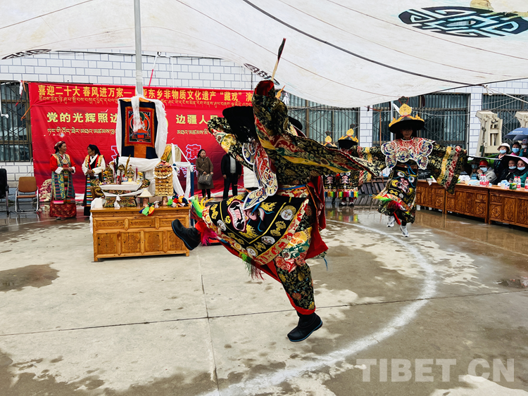 為繼承和弘揚優(yōu)秀傳統(tǒng)文化,使古老的藏戲再次煥發(fā)生機,近日,西藏自治區(qū)日喀則市亞東縣藝術(shù)團和亞東縣上亞東鄉(xiāng)嘎林崗藏戲隊共同開展了“喜迎二十大 春風(fēng)進(jìn)萬家”為主題的上亞東鄉(xiāng)非物質(zhì)文化遺產(chǎn)藏戲演出活動?;顒又荚谧尣貞蜇S富百姓精神文化生活的同時,激發(fā)廣大青少年傳承、弘揚藏戲藝術(shù)的文化自信與文化自覺,推動藏戲的傳承、保護和發(fā)展。