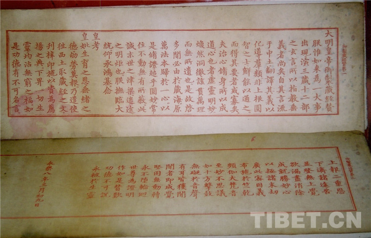 藏文古籍文獻(xiàn)是我國(guó)各民族交往交流交融的產(chǎn)物。就藏文古籍文獻(xiàn)中的精品典籍《大藏經(jīng)》而言,從公元7世紀(jì)佛教傳入吐蕃,開(kāi)始本土化、中國(guó)化的進(jìn)程中,高僧大德不斷進(jìn)行翻譯、集結(jié)、傳抄、刻版、印刷,形成豐富多彩、卷帙浩繁的《甘珠爾》和《丹珠爾》?!洞蟛亟?jīng)》集成、刊印、流傳離不開(kāi)歷代中央政府和帝王將相、各民族信眾、高僧大德的支持。比如,西夏時(shí)期,黑水城等地首次出現(xiàn)了藏文經(jīng)咒的刻印本。有元一代,《甚深內(nèi)義明本釋》等經(jīng)典刻印本在元大都問(wèn)世。12世紀(jì),納塘寺堪布覺(jué)丹熱智搜集編纂納塘《大藏經(jīng)》時(shí),其弟子從上都一帶寄送了大量的內(nèi)地紙墨。明代,永樂(lè)和萬(wàn)歷皇帝分別在南京和北京完整刊刻印刷藏文《甘珠爾》,開(kāi)啟了大規(guī)??〔匚奈墨I(xiàn)的歷史。清代,康熙和乾隆朝,在北京刊印了北京版《甘珠爾》和《丹珠爾》,并把藏文《大藏經(jīng)》相繼翻譯成滿(mǎn)文、漢文、蒙古文等多種文字,為我國(guó)各民族交往交流交融起到了推動(dòng)作用。藏文典籍文獻(xiàn)的刊印、流傳、保存,對(duì)藏語(yǔ)言文字規(guī)范、佛教文化保護(hù)傳承、不斷豐富民族文化等方面起到了重要作用。同時(shí),也進(jìn)一步促進(jìn)了各民族交往交流交融。