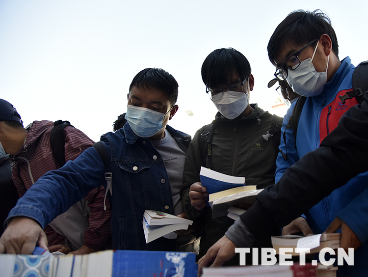 圖為4月23日,讀者在西藏自治區(qū)新華書(shū)店慈松塘門(mén)店選擇免費(fèi)贈(zèng)閱的圖書(shū) 攝影:王媛媛
