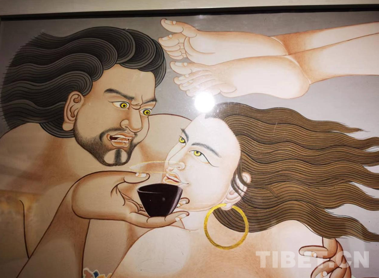 畫展特別展出了邊巴旺堆人物風(fēng)情“四季”,以傳統(tǒng)的欽孜派唐卡藝術(shù)繪畫表達(dá)了春夏秋冬自然民俗風(fēng)情,并以刻畫人物為個(gè)性特征,表達(dá)人一生經(jīng)歷的生老病死。視覺(jué)的沖擊力讓繪畫作品更具藝術(shù)感染力,表現(xiàn)了高原人對(duì)大自然和生命的祟敬。“鎮(zhèn)魔圖”作品以西藏“鎮(zhèn)魔圖”傳說(shuō)為繪畫基礎(chǔ)進(jìn)行了探索性創(chuàng)作,通過(guò)四幅作品顯現(xiàn)西藏幾十年來(lái)這片高天厚土發(fā)生的翻天覆地的變化,也表達(dá)了藏傳佛教健康發(fā)展的愿望,繪畫作品在藝術(shù)手法上,色彩厚重絢麗,濃郁的傳統(tǒng)和現(xiàn)代繪畫完美融合,作品對(duì)末來(lái)充滿了想象,給每位觀眾帶來(lái)不同的藝術(shù)享受。作品“三毒”繪畫藝術(shù)創(chuàng)作,通過(guò)藝術(shù)繪畫作品直觀、具體、形象地批判社會(huì)發(fā)展中的不雅享樂(lè)追求。三組11幅邊巴旺堆階段性的代表作品,不同的傳統(tǒng)繪畫形式展示了欽孜派唐卡藝術(shù)之美。