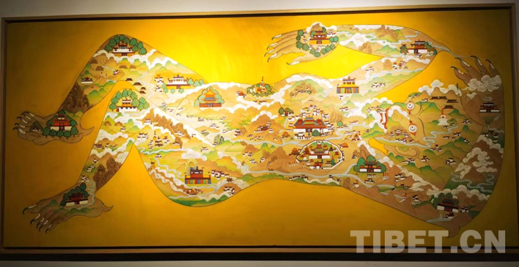 圖為鎮(zhèn)魔圖。作品以西藏“鎮(zhèn)魔圖”傳說(shuō)為繪畫基礎(chǔ)進(jìn)行了探索性創(chuàng)作,色彩厚重絢麗 攝影:王淑