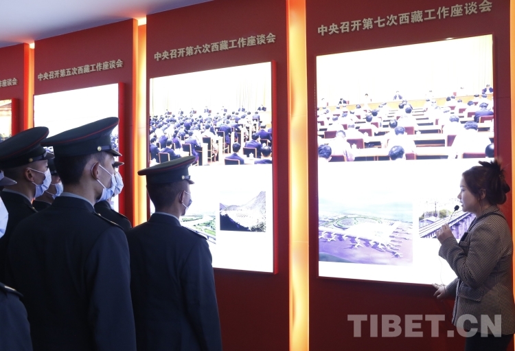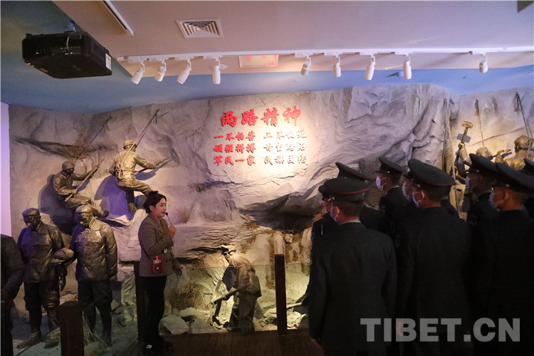 “1959年3月28日,中央政府宣布解散西藏地方政府,徹底砸碎了桎梏西藏上千年的封建農(nóng)奴制,西藏翻開了新的歷史篇章?!痹谥v解員的引導下,該團80名青年官兵走進西藏百萬農(nóng)奴解放紀念館,沿著革命先輩的足跡,聆聽著崢嶸歲月里一段段感人至深的紅色故事,2700平方米的展廳中陳列了800多件歷史文獻檔案資糧、文物實物、圖片和展陳藝術(shù)作品,詳細介紹了中國共產(chǎn)黨帶領(lǐng)西藏各族人民進行偉大的民主改革,使百萬農(nóng)奴翻身得解放的廢奴歷史。