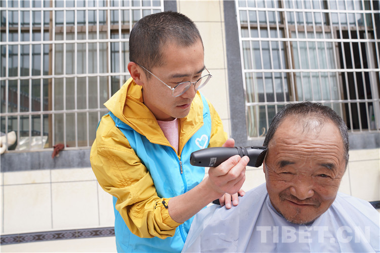 圖為青年志愿服務(wù)隊志愿者為老人理發(fā)