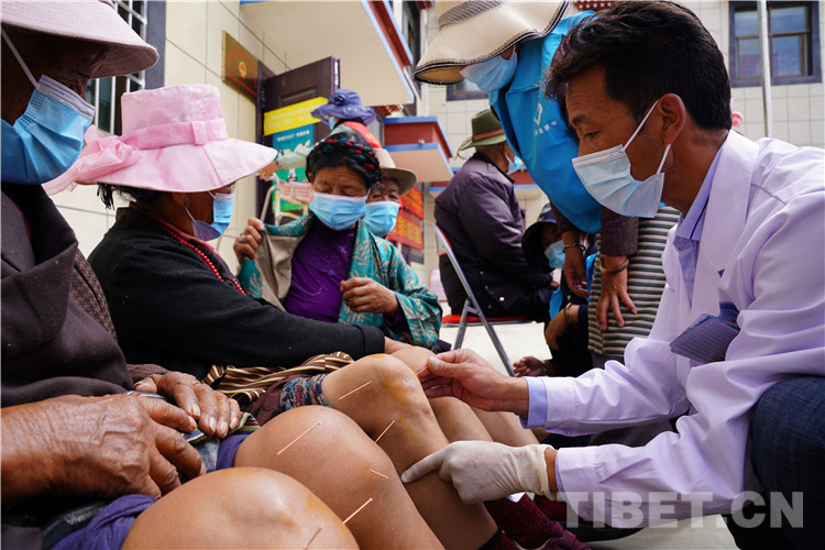 義診中,瓊結(jié)縣衛(wèi)健委(藏醫(yī)醫(yī)院)醫(yī)療健康志愿隊耐心接待每位前來咨詢的農(nóng)牧民群眾,悉心為農(nóng)牧民群眾診斷病情。
