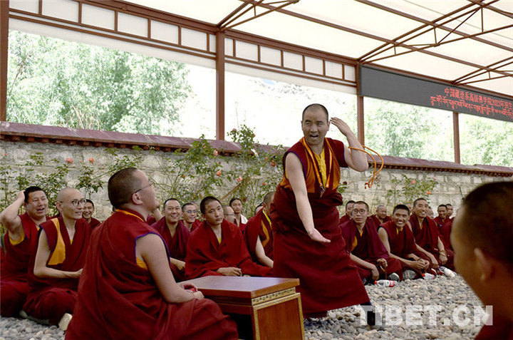 圖為中國藏語系高級佛學(xué)院2022級“拓然巴”高級學(xué)銜班招生考試西藏考點(diǎn)現(xiàn)場,考僧正在互辯。攝影:王媛媛