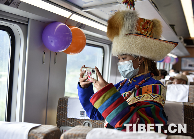 與斯朗旺扎的特別安排不同,游客胡菊萍和章猛飛是恰巧趕上了。一行人于6月23日抵達(dá)拉薩,在游覽了山南市的昌珠寺、雍布拉康等景點(diǎn)后,準(zhǔn)備從山南搭乘火車前往林芝繼續(xù)游玩。胡菊萍告訴記者,2007年,她也曾搭乘火車從西寧到拉薩旅游。“那時(shí)候,翻唐古拉山,身體特別不舒服。今天乘坐復(fù)興號(hào),感覺(jué)特別好。過(guò)隧道時(shí),一點(diǎn)都沒(méi)有耳鳴的反應(yīng),手機(jī)也有信號(hào)?!焙掌即蛩愣嗯囊稽c(diǎn)車窗外的景色,留存回憶的同時(shí)也要分享給家里人。