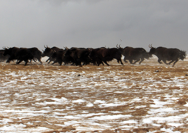 這是奔跑在羌塘國(guó)家級(jí)自然保護(hù)區(qū)的國(guó)家一級(jí)保護(hù)動(dòng)物野牦牛(唐召明2009年攝)