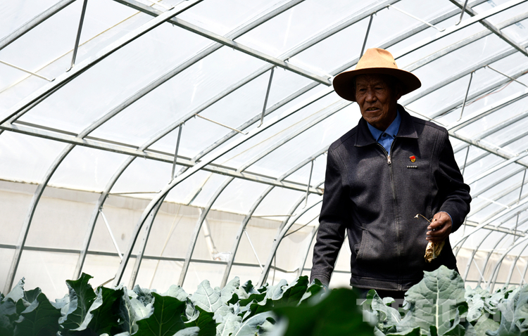 平均海拔4000米以上的高原,蔬菜能種好嗎?1998年,6座溫室大棚里的成功讓當(dāng)?shù)厝罕婇_始逐漸接受這一新鮮事物。2001年,濟(jì)南市第三批援藏干部積極爭(zhēng)取資金在彭倉(cāng)村建起了70座土坯大棚。村民拉巴扎西開始跟著濟(jì)南市農(nóng)業(yè)技術(shù)人員學(xué)技術(shù)?!八麄兘痰锰貏e細(xì),手把手指導(dǎo)我們。”跟著技術(shù)人員學(xué)了兩年,村里的70座溫室大棚分到各家各戶,拉巴扎西家也分了3座大棚。