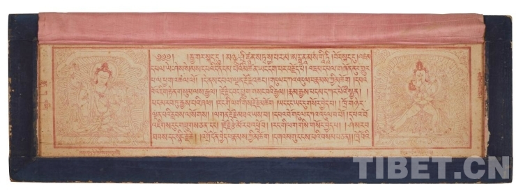 推崇藏傳佛教是清政府治理蒙藏地區(qū)的政治需要,同時(shí)也促進(jìn)了各民族文化的交流與交融。《大藏經(jīng)?甘珠爾》該版藏經(jīng)系清王室官刻本,纂輯、刻印都是由官方主持??淘?、裝幀頗為精良,版型較一般藏文經(jīng)大,每夾扉畫(huà)均為手工繪制,筆觸細(xì)膩,設(shè)色鮮麗,大多出自藏族畫(huà)家手筆,為佛教文化研究不可缺的資料??滴醯蹫榇擞H撰《御制番藏經(jīng)序》,序文稱,刊印本藏是為“廣崇大藏”。