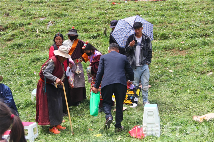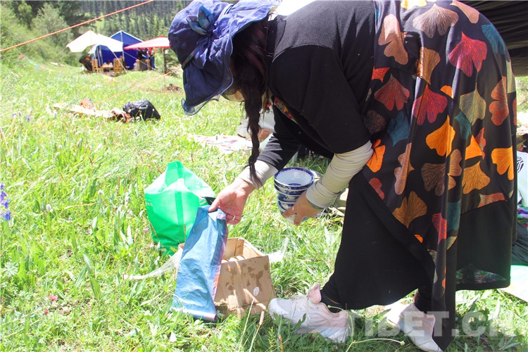 圖為2022年伊日鄉(xiāng)第二屆文化旅游藝術(shù)節(jié)上,在帳篷里休閑的群眾將食物殘渣放入垃圾袋 攝影:王茜