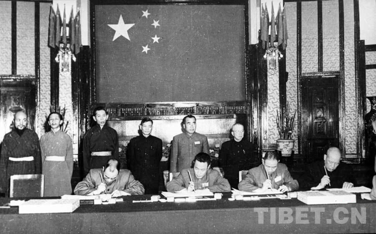 圖為《中央人民政府和西藏地方政府關(guān)于和平解放西藏辦法的協(xié)議》簽訂現(xiàn)場
