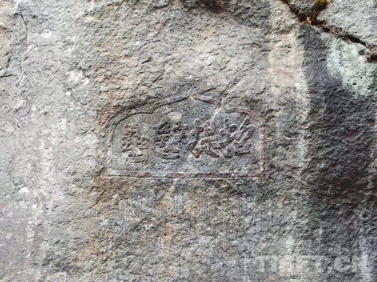 圖為刻有題銘“招提壁壘”的字樣的懸崖壁