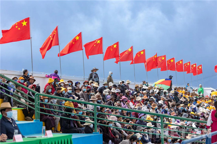 圖為紅原大草原雅克賽馬季開幕式現(xiàn)場的觀眾