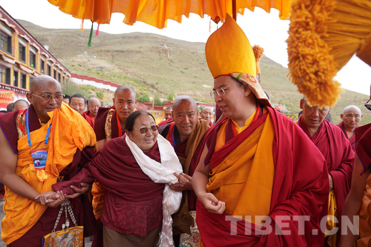 “多吉帕姆仁波切,您慢點!”桑頂?多吉帕姆德慶曲珍因年事已高,走路顯得有些吃力,班禪見狀細心叮囑道。