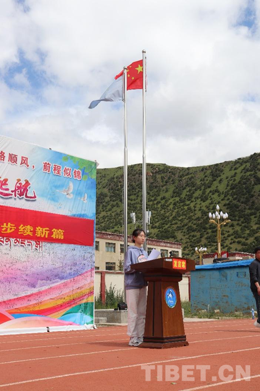 圖為閆關(guān)夏子同學(xué)在國旗下發(fā)表民族團(tuán)結(jié)主題演講 李彤彤 攝