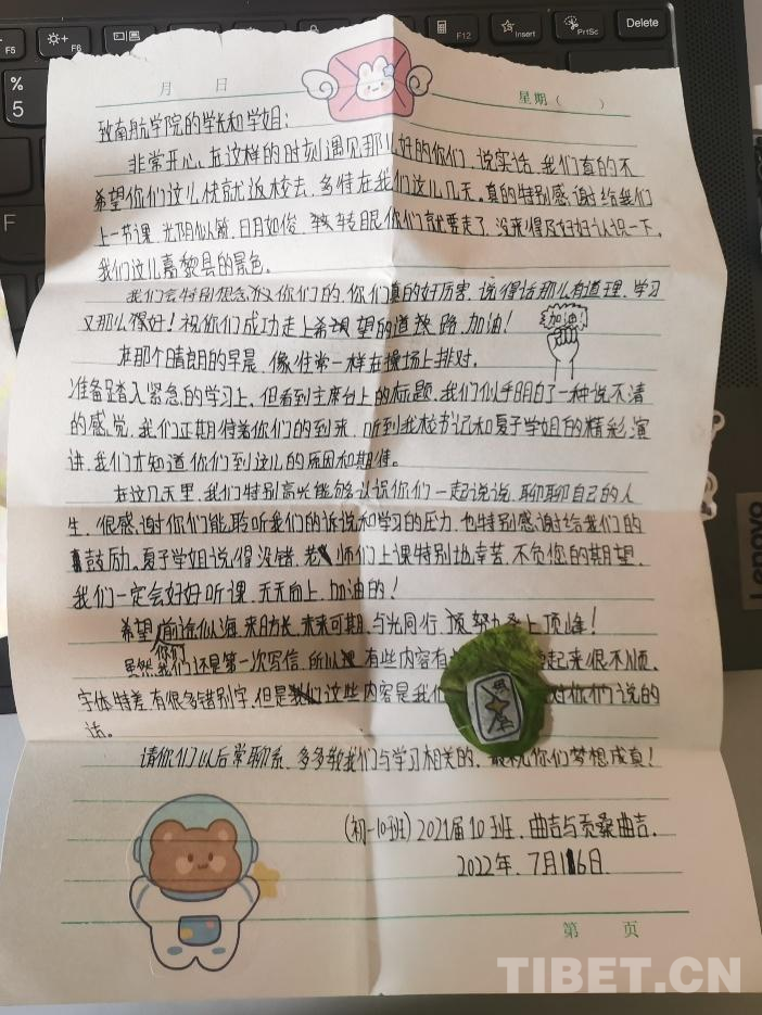這次的西藏之旅讓我非常難忘,在與嘉黎縣中學(xué)孩子相處的過程中,能夠感受到他們對于學(xué)習(xí)的熱情,對于運動的熱愛,對于內(nèi)地的期盼。偏遠(yuǎn)的地區(qū)并沒有消磨他們對于生活的熱愛,希望我們的教學(xué)能夠豐富他們的課余文化,讓他們對航空航天民航有更多的興趣。今天我們用愛和知識埋下一顆種子,希望未來它會生根發(fā)芽。祝孩子們前途似錦!