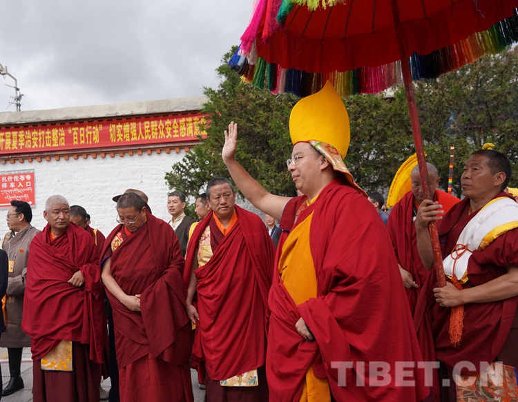 圖為班禪致以信教群眾美好祝福 攝影:王淑