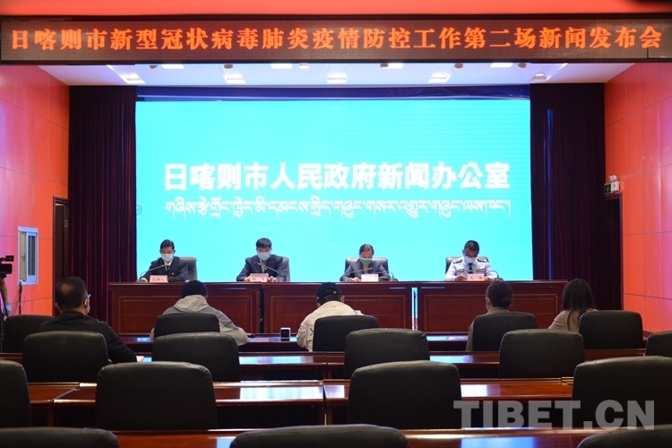 圖為日喀則市召開第二場新冠肺炎疫情防控新聞發(fā)布會現(xiàn)場