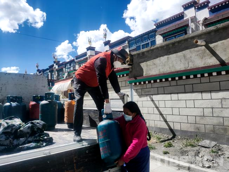 志愿服務(wù)隊志愿者們通過電話、微信群等方式排查,詢問并收集群眾基本生活物資(面粉、大米、煤氣罐加氣、蔬菜)需求,安排專人和車子到洛扎縣城進行代購,并以最快的速度把物資送到群眾家門口。