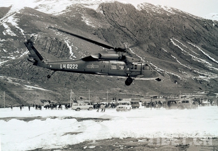 旋即,首都北京來電,中央派運(yùn)輸機(jī)救災(zāi)空投物資。3月27日,銀鷹展翅藏北高原,給被大雪圍困的牧民投下了糌粑、青稞、燃料、衣物和雪鏡等必需品。不幾日,中央又電令兩架“黑鷹”直升飛機(jī)投入到緊張的抗災(zāi)救災(zāi)工作中。