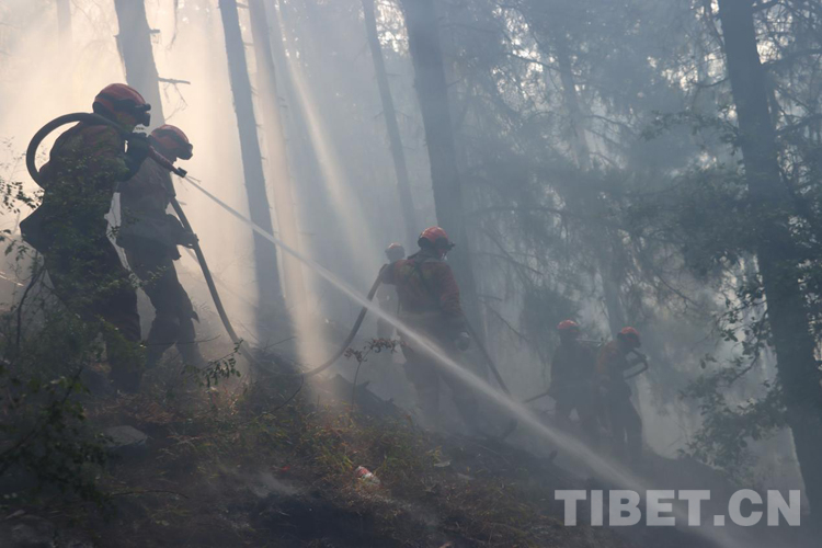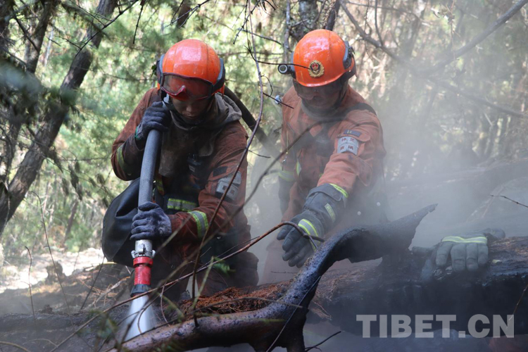 火場(chǎng)上,不說(shuō)有感天動(dòng)地的故事,但是那種“無(wú)畏火魔、不怕?tīng)奚?、舍我其誰(shuí)、團(tuán)結(jié)協(xié)作”的故事卻到處可見(jiàn)。那天,我們?cè)诮泳螅谝粫r(shí)間趕赴現(xiàn)場(chǎng),當(dāng)看到一條長(zhǎng)長(zhǎng)的火線(xiàn)猶如一條蜿蜒的巨龍盤(pán)旋在空檔村山腰,火舌在大風(fēng)助威下翻滾著向南側(cè)撲去時(shí),飛哥和我各帶領(lǐng)10名黨員骨干以南北兩翼夾擊的陣勢(shì)迎戰(zhàn)火魔。在高達(dá)2800米的原始林區(qū),夜里溫度接近-5℃,槍頭手高琪已全身上下濕透并伴隨冰片的出現(xiàn),隱約透著讓人冷顫的寒光,顫抖的身體讓槍頭不斷左搖右擺,但他毅然肩扛槍頭,勇斗火魔。撲救完畢后,剛要準(zhǔn)備休整,中隊(duì)接到殲滅山頂火點(diǎn)的任務(wù),火情就是命令,指戰(zhàn)員背著沉重的裝備在近70-80度的亂石陡坡上,抓著樹(shù)枝一步步向上攀爬,16年兵齡的王建紅在爬山過(guò)程中使勁喘息,即使空氣中彌漫著飛舞的灰,也為吸取更多的氧氣保持體力;接近山頂時(shí),一顆直徑約80cm的滾石從山頂滾落,體型弱小的二級(jí)消防士曹橋在緊促的避險(xiǎn)哨音中采取緊急避險(xiǎn)措施成功躲避,滾石與他擦肩而過(guò),但危險(xiǎn)的環(huán)境未能抑制他戰(zhàn)斗的決心。中隊(duì)指戰(zhàn)員暢談此次滅火作戰(zhàn)感受時(shí),都紛紛笑言:“我們從海拔2300米打到了3700米,相當(dāng)于從察隅到了拉薩?!?1日,中隊(duì)轉(zhuǎn)戰(zhàn)火場(chǎng)西南線(xiàn),此時(shí)經(jīng)過(guò)5天的連續(xù)奮戰(zhàn),指戰(zhàn)員的思考能力和興奮的感覺(jué)消失殆盡,只剩下機(jī)械式行走的軀體,膝蓋有舊傷的戰(zhàn)斗班班長(zhǎng)王明因?yàn)槌?fù)荷運(yùn)動(dòng)已疼痛難忍,但他在咬牙堅(jiān)持。班長(zhǎng)宋遠(yuǎn)金、扎西歐珠主動(dòng)擔(dān)當(dāng)不畏艱險(xiǎn),從不到2300多米的地方,背著滅火裝備和滿(mǎn)滿(mǎn)的水桶,爬到4000米的山頂排除隱患,清理煙點(diǎn)。
