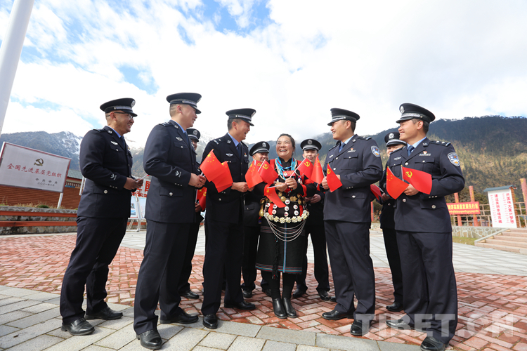宣講結束后,米林邊境管理大隊民警與亞夏在瓊林村的天邊牧場,舉行重溫入黨誓詞活動,表達對黨的深深熱愛?;顒幼詈?,民警與亞夏還共同高歌了《沒有共產(chǎn)黨就沒有新中國》。(中國西藏網(wǎng) 通訊員/張力 記者/王佳豪)