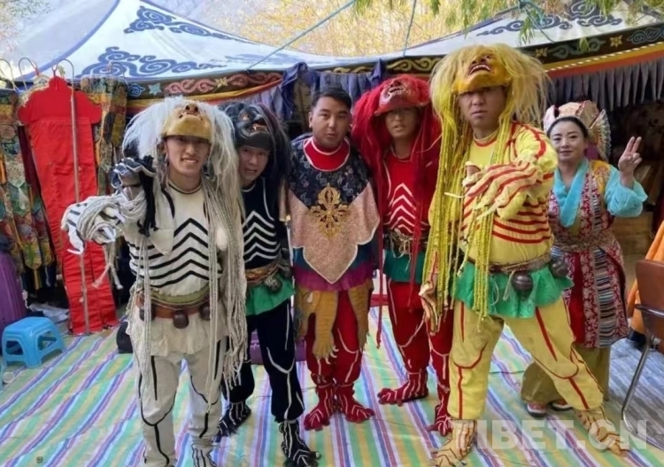 起初抱著學(xué)習(xí)的態(tài)度來到雪巴拉姆藏戲團(tuán)的旦增益西,被各位前輩對藏戲的執(zhí)著和堅(jiān)守打動了?!把┌屠凡貞驁F(tuán)共有56名成員,團(tuán)隊(duì)的年齡層次從86到16歲。團(tuán)隊(duì)里的每個(gè)人都是一專多能,因?yàn)槭杖氩欢?,大家也都身兼副業(yè),但是沒有人放棄學(xué)習(xí)藏戲。”