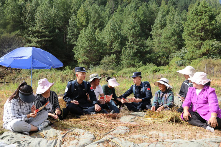 在田間地頭,趁著村民正坐在田坎上休息,“背包民警”向大家介紹:“習(xí)近平總書記在二十大報(bào)告中提出,增進(jìn)民生福祉,提高人民生活品質(zhì)……”“背包民警”邊宣講邊向村民們發(fā)放了自己印發(fā)的黨的二十大精神宣講手冊,據(jù)了解,考慮到轄區(qū)群眾以中老年人為主,大多數(shù)認(rèn)識漢字不多,所以“二十大精神宣講手冊”采取圖文并茂的方式,用最通俗易懂的話向群眾解釋二十大報(bào)告的內(nèi)容。