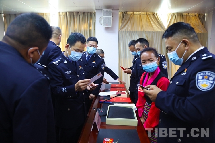 宣講過程中,尼瑪拉宗代表向在場民警講述了“國旗老阿媽”的故事,被人們親切稱為“國旗老阿媽”的次仁曲珍,沒有上過學、沒有讀過書,然而從民主改革至離開人世的48年時間里,她始終堅持用一種獨特而虔誠的方式——每天在自家院子里升掛國旗,來表達自己樸素、真摯而深厚的愛國情懷。在代表講述的生動形象的故事中,民警們與國旗老阿媽進行了一場跨越時空的精神對話,聽得津津有味備受鼓舞。