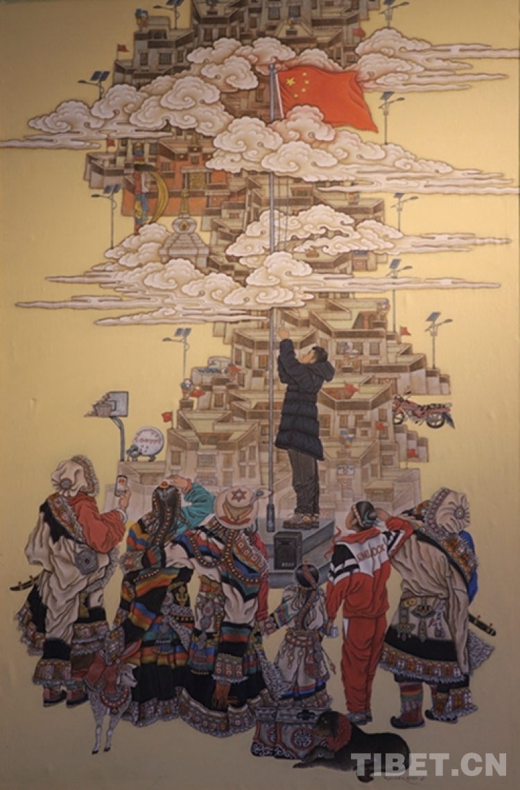 “畫(huà)家們?cè)谘永m(xù)深厚傳統(tǒng)文化,彰顯西藏唐卡繪畫(huà)高超技藝的同時(shí),不固守畫(huà)派風(fēng)格特色,用創(chuàng)新的方式聚焦偉大時(shí)代,描繪美好生活,歌頌西藏與祖國(guó)同行的盛世圖景?!蔽鞑刈灾螀^(qū)文聯(lián)副主席尹小林說(shuō)。