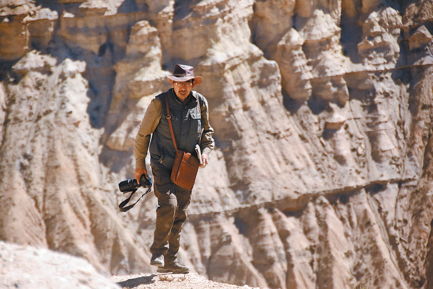 圖為張建林在野外考察 攝影:王毅 圖片來源:人民日?qǐng)?bào)