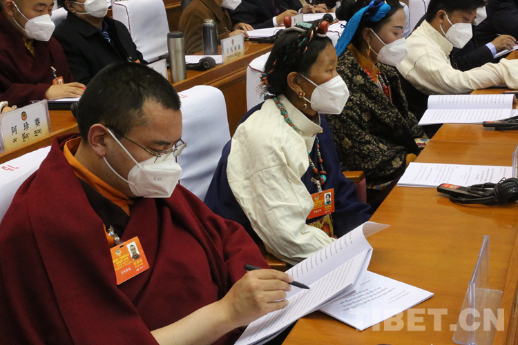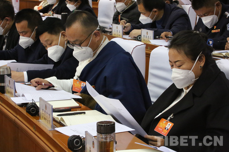 圖為嘎瑪澤登代表政協(xié)第十一屆西藏自治區(qū)委員會常務(wù)委員會向大會報告工作 攝影:王佳豪