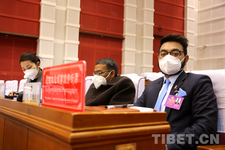 圖為尼泊爾駐拉薩總領(lǐng)事納瓦拉杰·達卡爾、領(lǐng)事薩賓·巴特拉伊旁聽會議 攝影:王佳豪