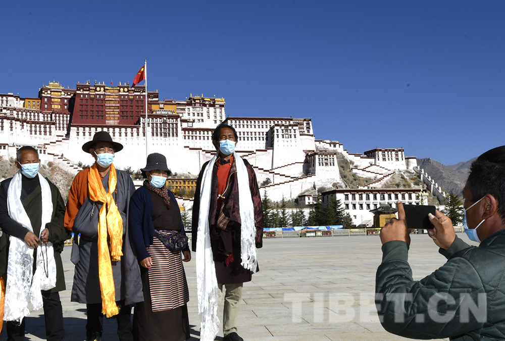 圖為2022年12月初,拉薩市各旅游景點(diǎn)恢復(fù)開放,游客在布達(dá)拉宮廣場(chǎng)拍照留念 攝影:王媛媛