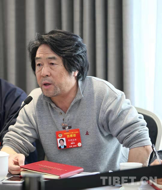 圖為第十四屆全國政協(xié)委員、西藏自治區(qū)政協(xié)副主席、自治區(qū)文聯(lián)主席扎西達(dá)娃