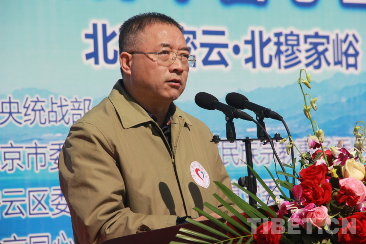 圖為北京市委統(tǒng)戰(zhàn)部副部長(zhǎng)、北京社院黨組書記、常務(wù)副院長(zhǎng)呂仕杰在“同心造林·共鑄健康”“同心·共鑄中國(guó)心”2023年同心林植樹(shù)和義診活動(dòng)啟動(dòng)儀式上致辭 攝影:劉莉