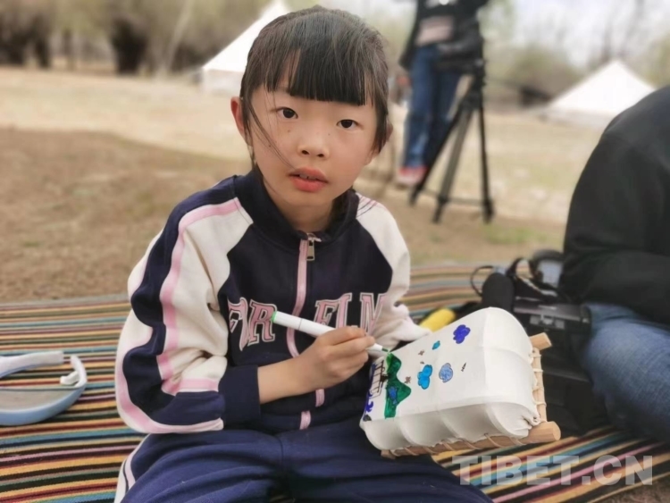 看完精彩的“郭孜舞”后,孩子們在老師的指導(dǎo)下,開始體驗DIY彩繪。他們發(fā)揮超強(qiáng)的想象力,用彩筆在“迷你版”羊皮船上創(chuàng)造專屬自己的繪畫作品,時而專注地繪畫,時而向老師展示自己的作品,度過輕松愉快的時光。