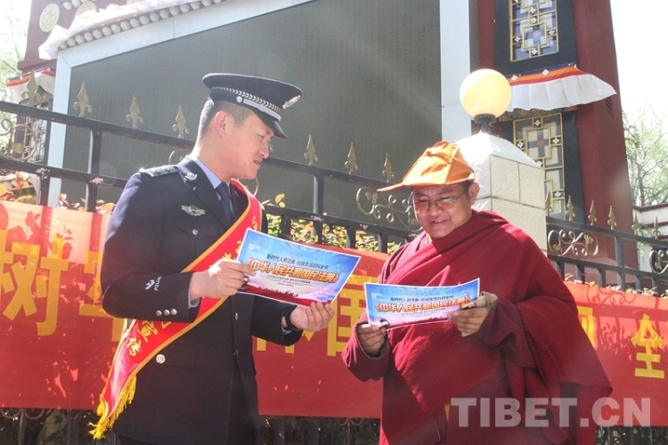 圖為西藏邊檢總站執(zhí)法調(diào)查支隊組織民警開展“2023民法典進公園”主題宣傳活動 攝影:仁青旺堆