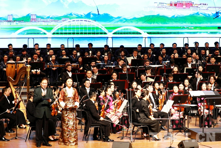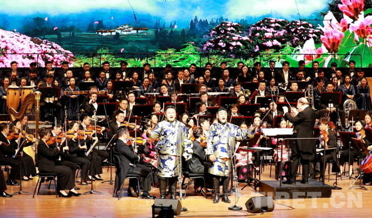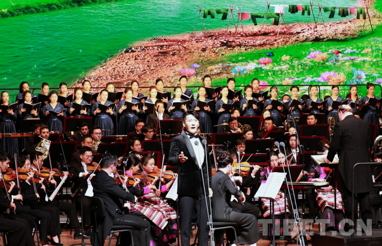 圖為中音歌唱家、國家一級演員霍勇,西藏自治區(qū)歌舞團青年女高音次仁央宗領(lǐng)合唱《美麗的西藏 可愛的家鄉(xiāng)》 攝影:劉莉