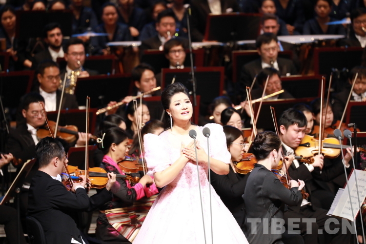圖為西藏自治區(qū)歌舞團青年女高音扎西巴姆演唱《托起吉祥的云彩》 攝影:劉莉