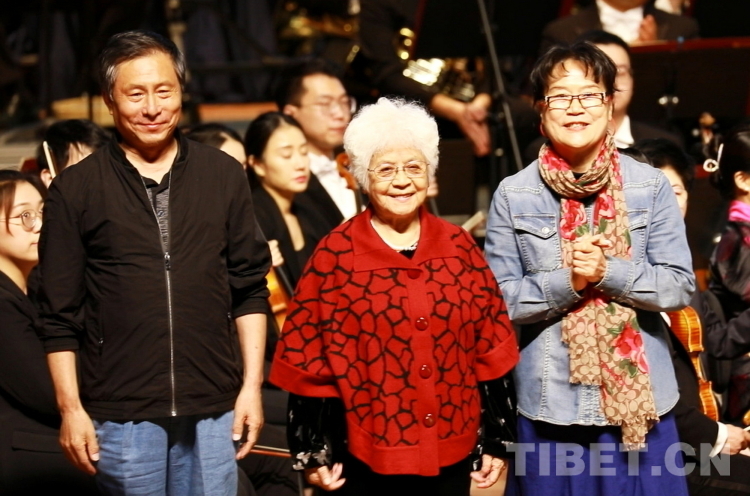 圖為著名表演藝術(shù)家、國家一級演員瞿弦和(前排左)和西藏廣播電視臺主持人益西卓瑪主持音樂會 攝影:劉莉