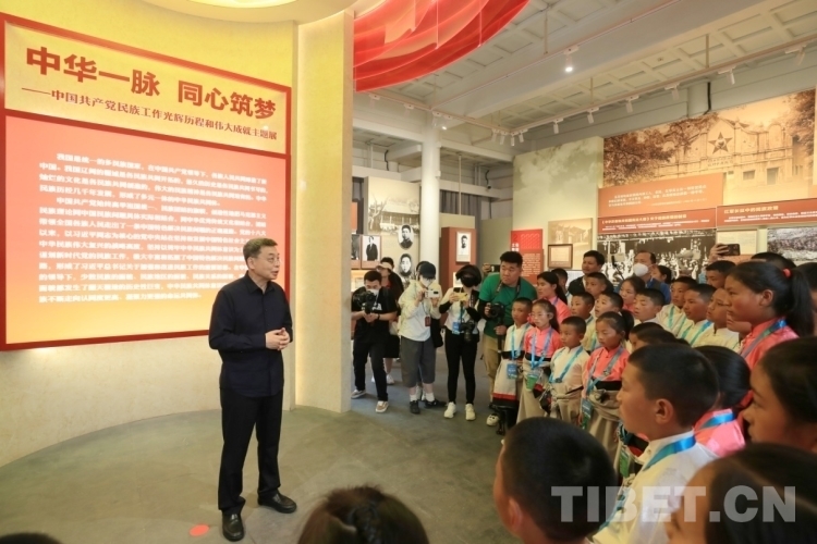 中國西藏網(wǎng)訊 6月1日,中央統(tǒng)戰(zhàn)部副部長,國家民委黨組書記、主任潘岳來到位于北京蒙藏學(xué)校舊址的中華民族共同體體驗館,同參加“三江源·北京情·中國心——青海玉樹青少年北京行”公益活動的40名孩子共度“六一”國際兒童節(jié)。