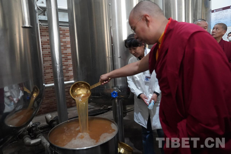 當(dāng)看到傳統(tǒng)醫(yī)學(xué)傳承及保護(hù)、整理和研究藏醫(yī)藥古文獻(xiàn)取得較好成果,班禪流露出滿意的笑容。對(duì)當(dāng)班的年輕醫(yī)護(hù)人員,班禪詢問了他們生話、學(xué)習(xí)、工作等情況,并鼓勵(lì)他們一定要以慈悲的心靈對(duì)待患者,在病房里,對(duì)患者們送去溫暖的關(guān)懷和撫慰、并給他們摸頂賜福。當(dāng)?shù)弥蒯t(yī)藥科研工作正走向健康軌道,一些藏藥專著在國內(nèi)外產(chǎn)生較大影響時(shí),班禪表示十分欣慰。
