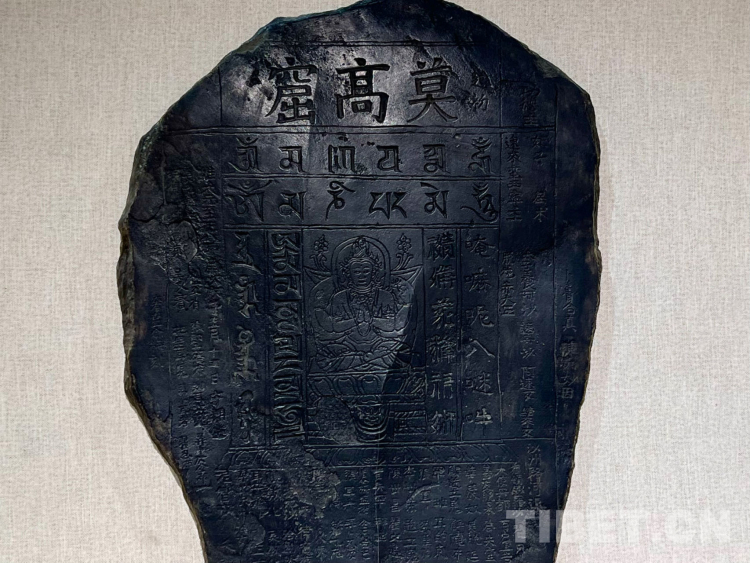 在敦煌,最能反映民族文化多樣性的實物資料無疑是莫高窟第61窟出土的《莫高窟六字真言碣》。碣石勒立于元順帝至正八年(1348),保存基本完好,其上方及左右方刻六字箴言,分別用漢文、梵文、回鶻文、藏文、西夏文和八思巴文鐫刻。六字箴言為藏傳佛教名詞,用不同語言進(jìn)行鐫刻,不僅反映出藏傳佛教在民族交往交流交融過程中發(fā)揮的巨大作用,也展現(xiàn)出不同民族文化間的相互尊重、相互兼容。除此之外,莫高窟的第465窟中所描繪了大量吐蕃苯教或藏傳佛教前弘期內(nèi)容,被學(xué)界公認(rèn)為藏傳佛教的經(jīng)典壁畫。但這些都僅僅是敦煌莫高窟中有關(guān)藏族文明的冰山一角。