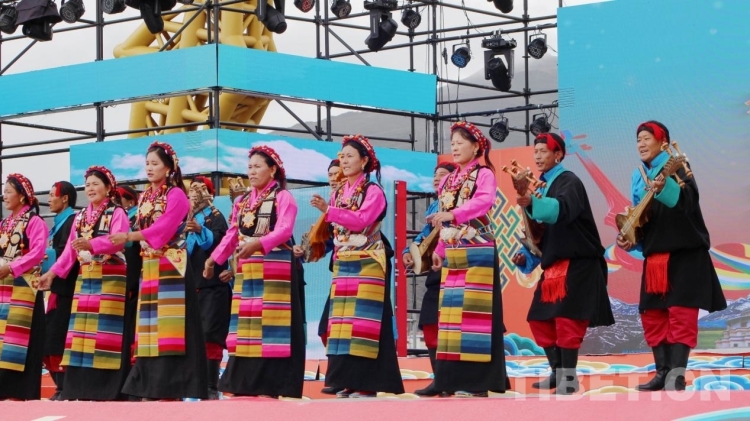 中國西藏網(wǎng)訊 8月4日,西藏日喀則拉孜縣在縣堆諧人民廣場舉辦下轄曲瑪鄉(xiāng)、拉孜鎮(zhèn)、彭措林鄉(xiāng)、熱薩鄉(xiāng)、曲下鎮(zhèn)等11個鄉(xiāng)鎮(zhèn)文藝演出隊堆諧文藝比賽。各鄉(xiāng)鎮(zhèn)代表演員穿著氆氌藏裝,男士們頭戴“扎秀”、人手一把扎念琴,女士們頭戴圓形“巴珠”頭飾、腰間系上五彩邦典等盛裝出席比賽現(xiàn)場。