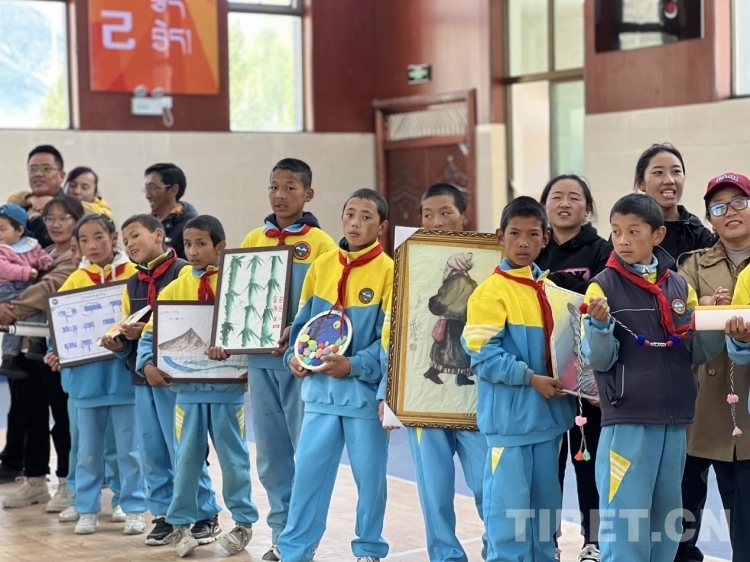 在愛(ài)心拍賣會(huì)上,藏族小朋友制作的特色手工藝品,不斷吸引著所有志愿者的目光。旁多鄉(xiāng)中心小學(xué)拿著手工品、書(shū)法作品、繪畫(huà)作品等依次上臺(tái)展示,拍賣師介紹作品的聲音剛落下,在場(chǎng)的志愿者就紛紛舉牌應(yīng)拍,叫喊加價(jià)的聲音此起彼伏,大家紛紛慷慨解囊,舉牌應(yīng)拍。