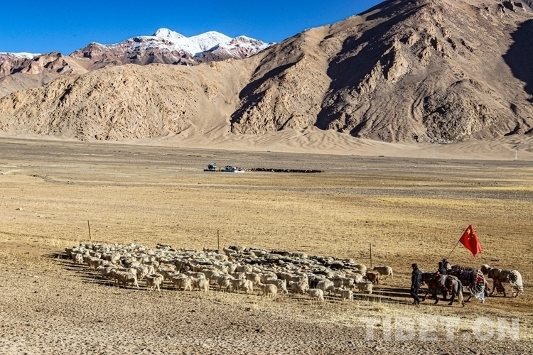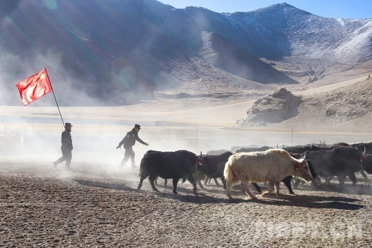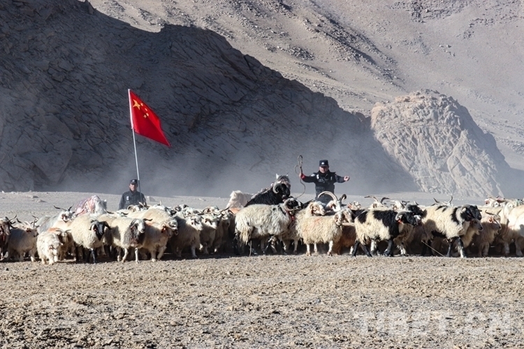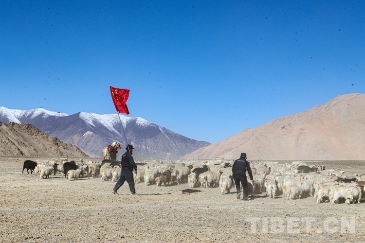 圖為阿里邊境管理支隊日土邊境派出所民警組成護牧隊幫助牧民轉(zhuǎn)場